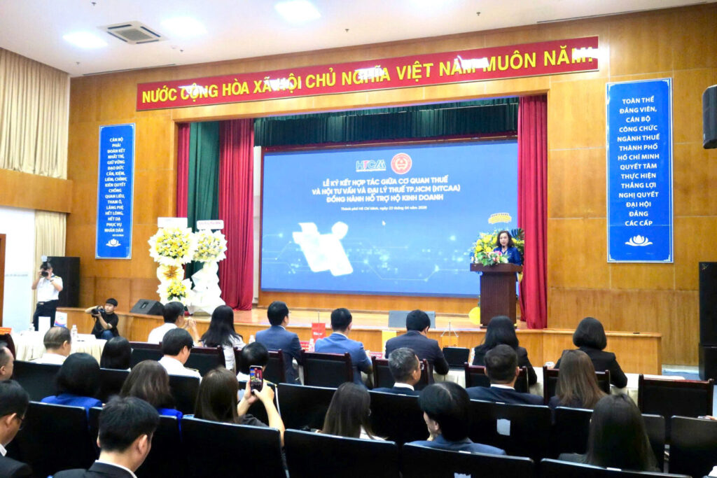 Tham dự buổi lễ có sự hiện diện của Lãnh đạo Thuế TP.HCM, đại diện Hội Tư vấn và Đại lý Thuế TP.HCM (HTCAA), cùng lãnh đạo 11 đơn vị đồng hành bao gồm các ngân hàng lớn và các đơn vị cung cấp giải pháp công nghệ uy tín.