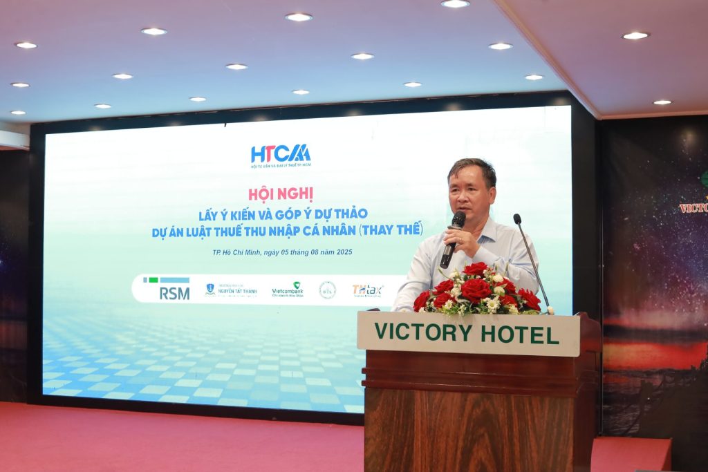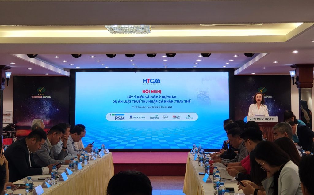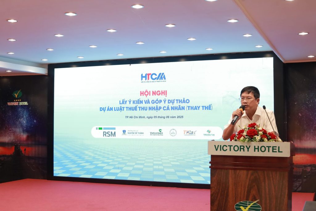 TP.HCM, ngày 5/8/2025, Hội Tư vấn và Đại lý thuế TP.HCM (HTCAA) đã chủ trì tổ chức Hội nghị quan trọng nhằm trao đổi, thảo luận và tổng hợp các ý kiến đóng góp cho việc hoàn thiện dự thảo Dự án Luật Thuế Thu nhập cá nhân (TNCN) để trình Quốc hội vào kỳ họp tới.