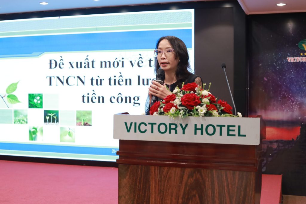 Ths Nguyễn Thị Minh Hiệp, Khoa kế toán Kiểm toán – ĐH Văn Lang trình bày chuyên đề “Đề xuất mới về thuế TNCN từ tiền lương, tiền công”